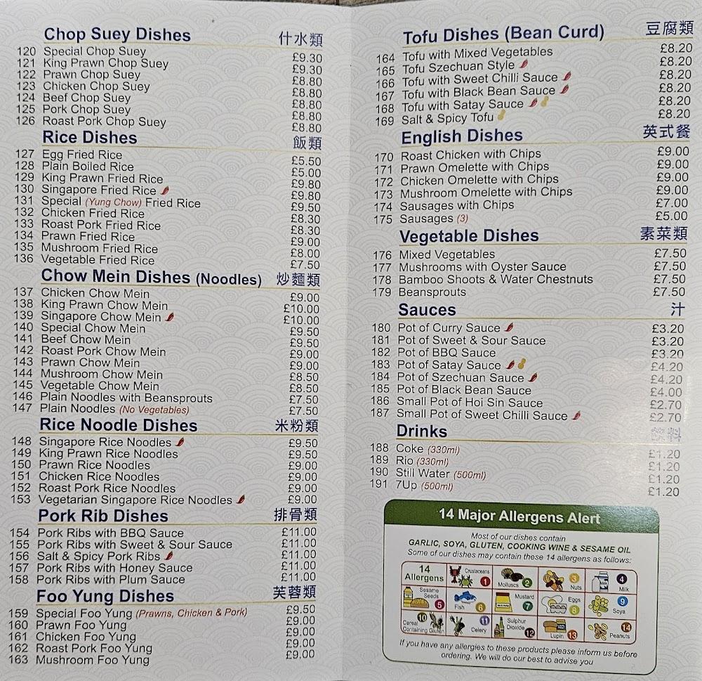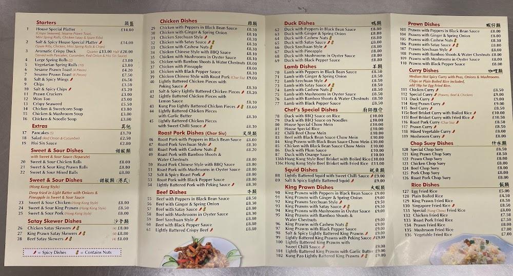 Jade House's menu is a treasure trove for lovers of Chinese cuisine. Offering a diverse selection, it includes traditional favorites like Chicken Chow Mein, aromatic Peking Duck, and a robust array of Chop Suey dishes. Each dish showcases a commitment to fresh ingredients and bold flavors. The menu features 16 different starters that allow diners to sample various flavors before diving into heartier mains. Vegetarians won't be left out, with a selection of vegetable dishes designed to complement the meat options. The inclusion of English options, like fish and chips, caters to those seeking a familiar bite. Special curry dishes, with a variety of meats, highlight the chefs' creativity. If you're unsure where to start, the House Special Platter is a great choice to sample multiple offerings in one go.